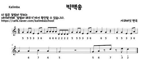 요 빅맥송을 간단히 칼림바로 편곡해본 악보입니다!