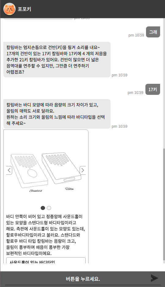 포포키는 가장 적합한 칼림바를 추천해주기 위해