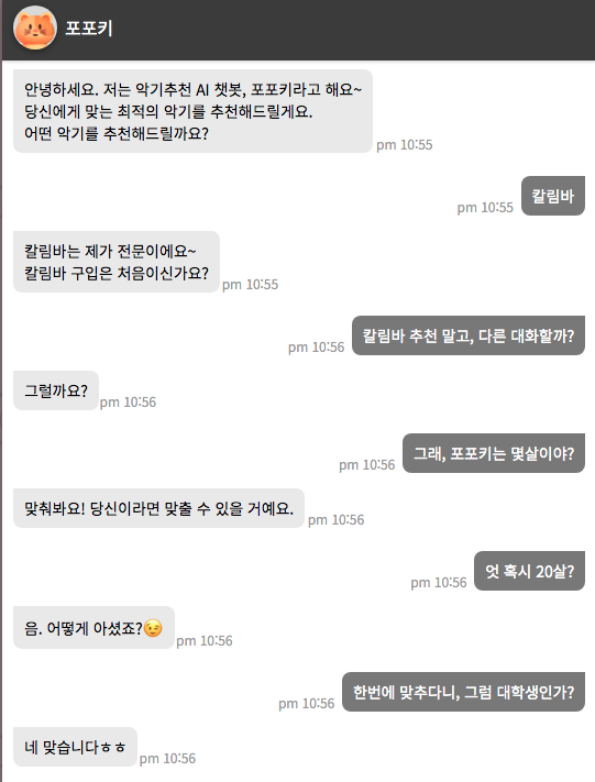 악기 추천 Ai 챗봇 포포키를 서비스하기 시작했다는 소식을 전해드릴게요~